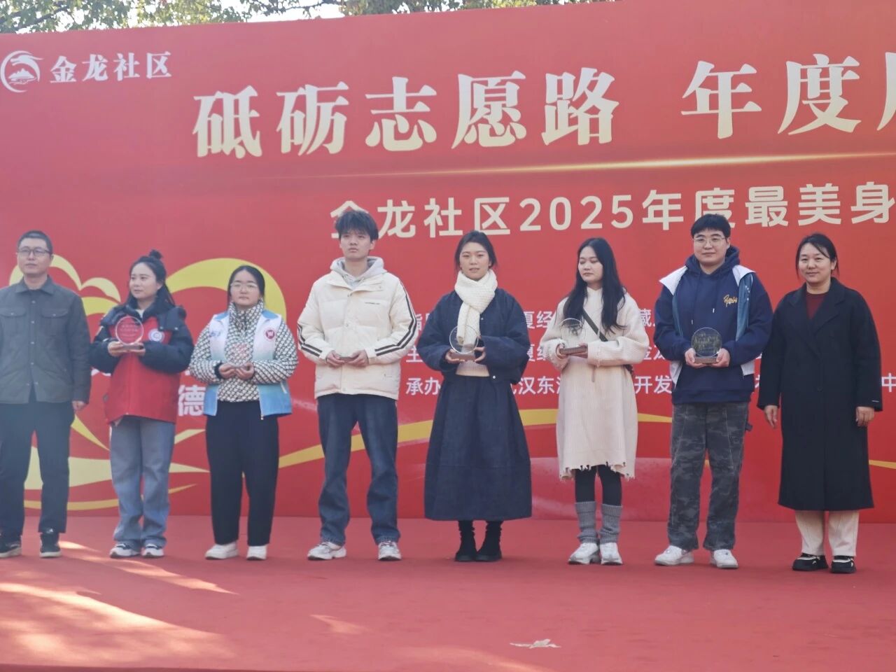 近日,武汉市江夏经济技术开发区金龙社区2025年度“最美身边人”表彰大会顺利举办。yl7703永利集团 “筑梦” 志愿服务队凭借扎实的服务成效与突出的奉献表现,再度荣获 “最美高校志愿服务队” 荣誉称号。这是社区对团队坚守志愿初心、深耕基层服务的高度认可,也为学院全体志愿者持续投身公益事业注入了强劲动力。