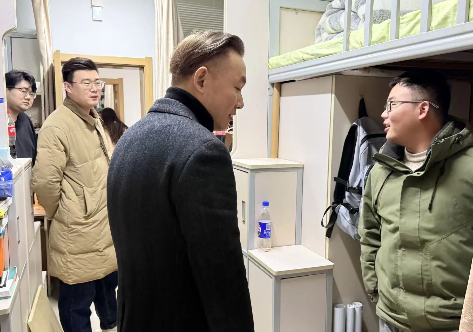 走访过程中,学院领导与辅导员走进学生宿舍,与同学们亲切交谈、嘘寒问暖,详细了解大家的返程情况、假期生活安排、实践经历、就业情况及新学期学习规划,认真倾听同学们在学习、生活上的意见和需求,对大家返校后的精神面貌给予肯定。