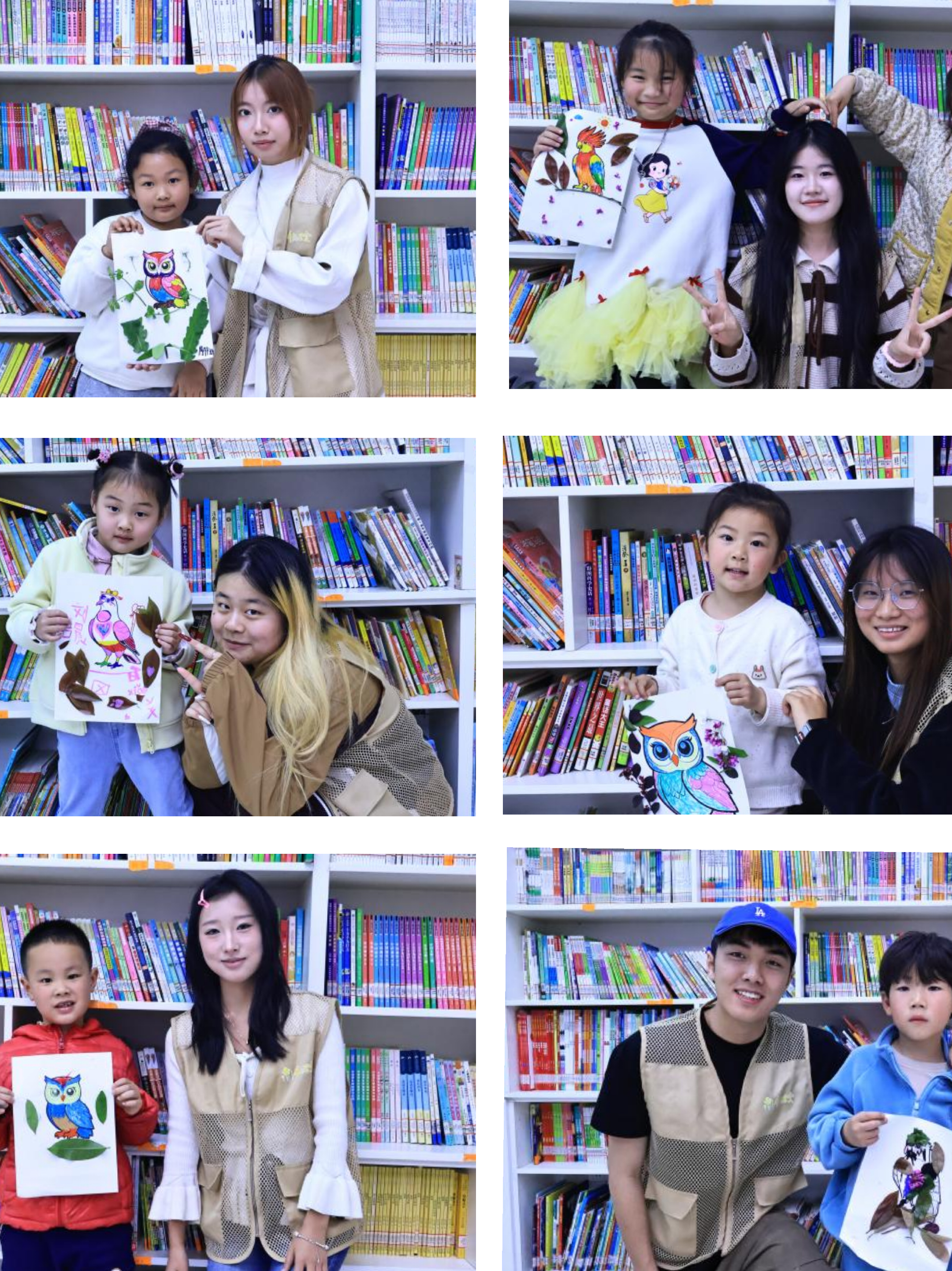 不久后,一幅幅充满自然气息的作品相继完成。线稿上的小鸟在色彩与亲手采摘的自然素材点缀下,仿佛拥有了生命:鸭子在芦苇丛中戏水,老鹰在森林上空翱翔,啄木鸟在树干上忙碌,鹭鸟在浅滩边伫立。每一件作品都精准呼应了鸟类的生存特征,满是孩子们的巧思与心意。阳光透过窗户洒在作品上,落叶的纹理与小鸟的色彩相映成趣,尽显春日自然的灵动与美好。