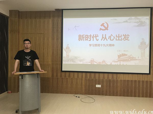 黄俊杰老师谈到十九大报告的主题是:不忘初心,牢记使命,高举中国特色社会主义伟大旗帜,决胜全面建成小康社会,夺取新时代中国特色社会主义伟大胜利,为实现中华民族伟大复兴的中国梦不懈奋斗。