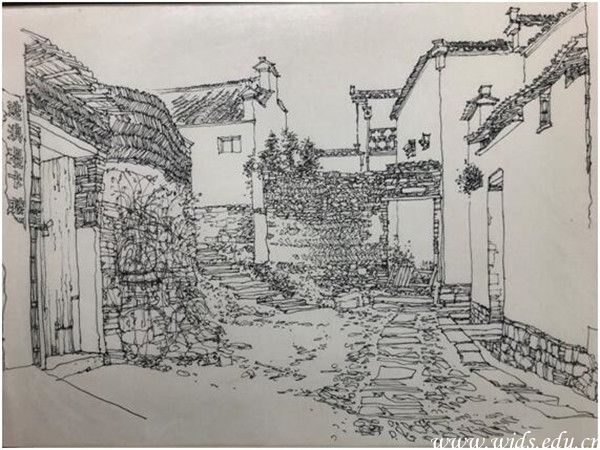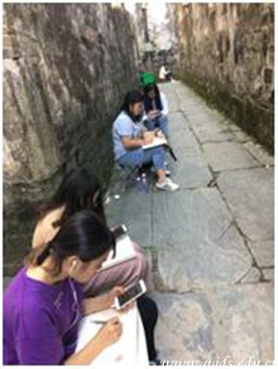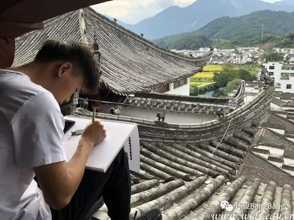 通过写生的形式对徽派建筑进行深入考察,了解村落形成的原因、历史及建筑的形式、结构,且这样的学习形式让同学们拉近了与大自然的距离。