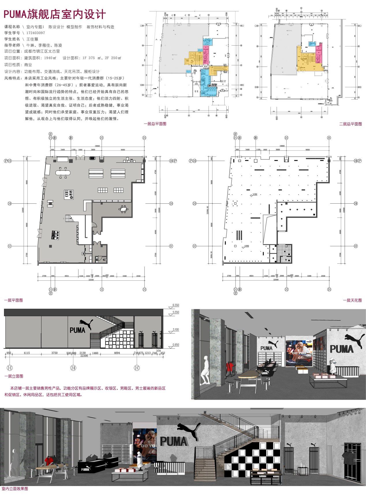 课程要求学生了解室内商业展示空间的设计内容,掌握室内商业展示设计的基本方法,并且能熟练地运用于方案设计中。