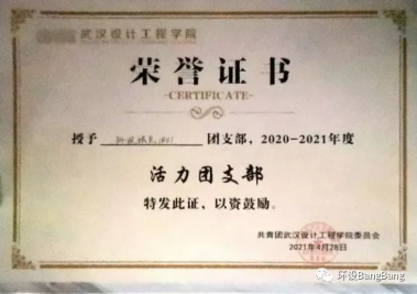 团支部先后获得2018-2019学年“优秀班集体”;2019-2020学年“优秀班集体”; 2020学年“活力团支部”; 2021学年“活力团支部”等多项荣誉。在平时的生活着,更有多个寝室被评为“学风先进寝室”和“文明建设寝室”。