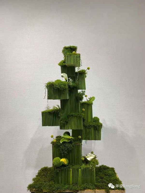 架构主体以竹子搭建而起,翠绿的竹子采用最环保的方式于竹面刷上植物油,使其颜色饱满光亮。“竹子”象征骨气和君子,宁折不弯、百折不挠。