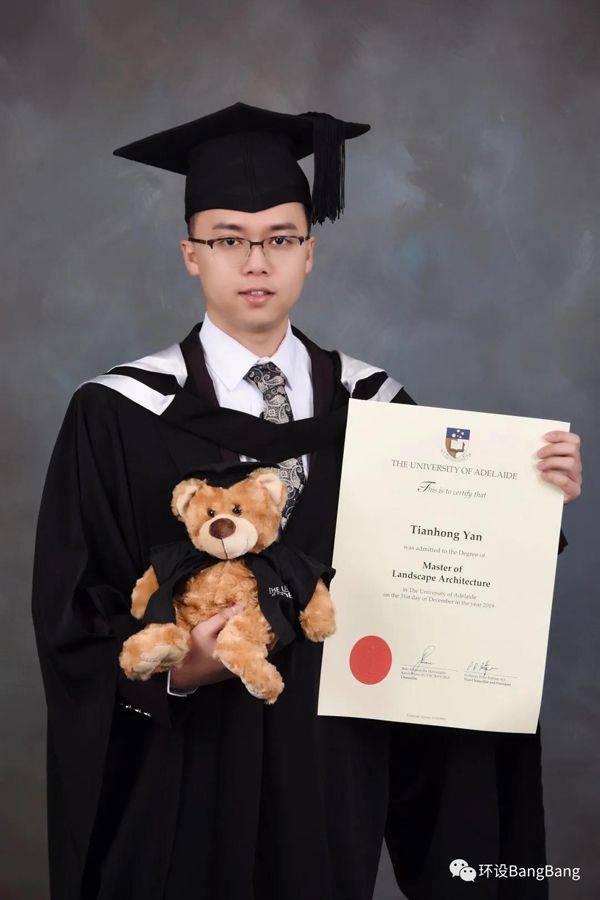 研究生在校期间,于2018年完成南澳大利亚州原住民区leigh creek的改造项目,意旨在探索原住民文化和艺术作品与景观设计的融合。同年,与建筑学进行跨学科合作前往新西兰基督城完成"FESTA"亚洲食品节灾后重建主题设计与施工,并与其它五所澳洲高校同台竞技。项目在新西兰获得好评,获得新西兰国家电视台TVNZ报道,主流社交媒体浏览量破百万。2019年,以小组合作形式完成由Myer集团,阿德莱德大学和Oxigen studio联合开展的阿德莱德Marion地区改造项目与装置设计。同年,利用植物学相关知识技术完成阿德莱德Carriageway Park周边设计。2019年研究生毕业设计完成主题为“Phytoremediation”的针对阿德莱德港口的修复改造设计,并探索VR虚拟现实技术在景观设计中的使用。项目提名2019 Rodney Beames Award设计奖,作品被澳大利亚景观设计师协会(AILA)官网收录。研究生期间还有两项作品入选参展。