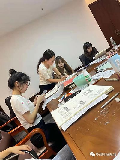 每天下午,同学们都会按照计划带好早晨收集的素材,在酒店整理画画。张塝镇令人满意的景色无处不在;悠长的巷子,古老的宅院,斑驳的墙壁,都留在了我们的画纸上。
