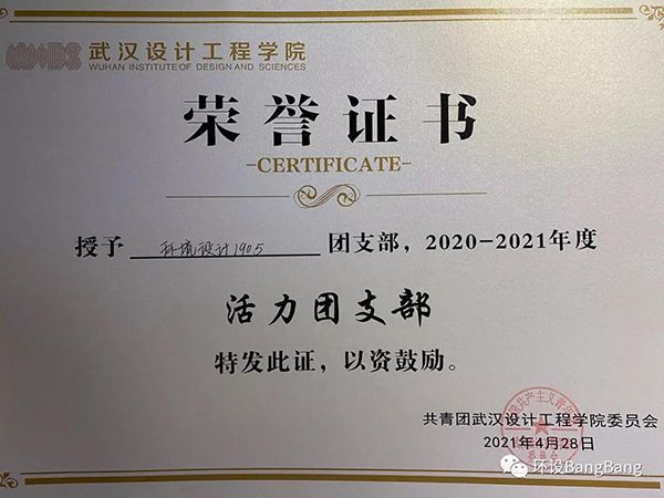 2021年4月武文超同学获“优秀共青团员”荣誉称号。