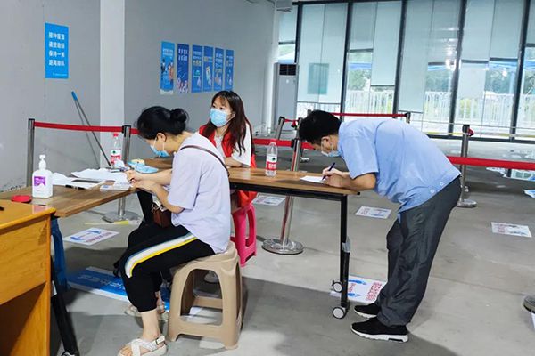 张雨童指导社区群众填写疫苗接种登记表