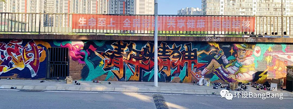 本网讯(通讯员 杨春颖 谭文军 李骏)青春是时代最美的赞歌,2022年5月4日正值五四青年节,yl7703永利集团环境设计1901班的张楚晖同学以“青年精神”为主题,在足球场旁的墙面上创作了一幅生动丰富的涂鸦作品,给防疫期间的校园生活增添了一抹色彩。