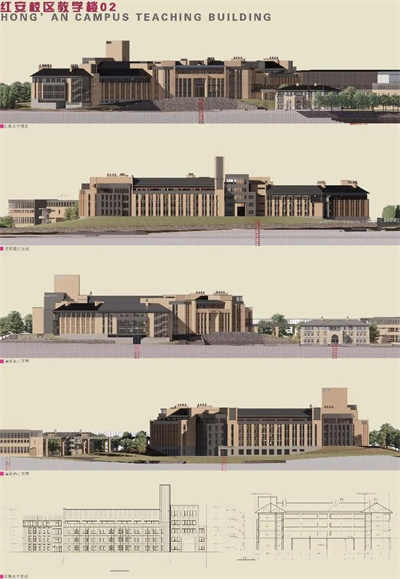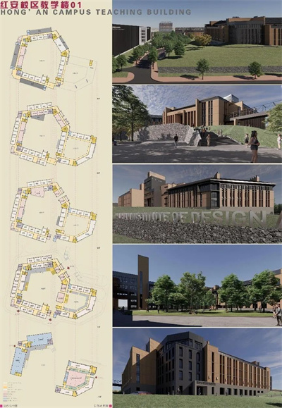 据悉,本届比赛非命题赛专业组共收到来自全国共30个赛区,近3000件作品。我院教师团队作品《红安校区教学楼方案设计》获省赛一等奖、国赛二等奖;教师团队作品《红安新校区规划设计》获省赛二等奖、国赛三等奖;教师个人作品《红安校区学生宿舍方案设计》获省赛三等奖。让我们来了解一下以上的获奖作品吧!