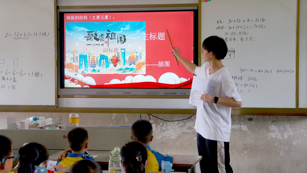 课堂中,队员们通过海报设计的鉴赏引入,让小朋友们明白生活中处处都有美术,了解了美术的实用性。以祖国为主题融入到课堂中,也激发了孩子们的爱国情怀,大家热情高涨,积极举手发言,每个人都十分专注,队员们通过讲解和回答让小朋友们知道了美是什么,如何去鉴赏美,让大家逐渐爱上美术。
