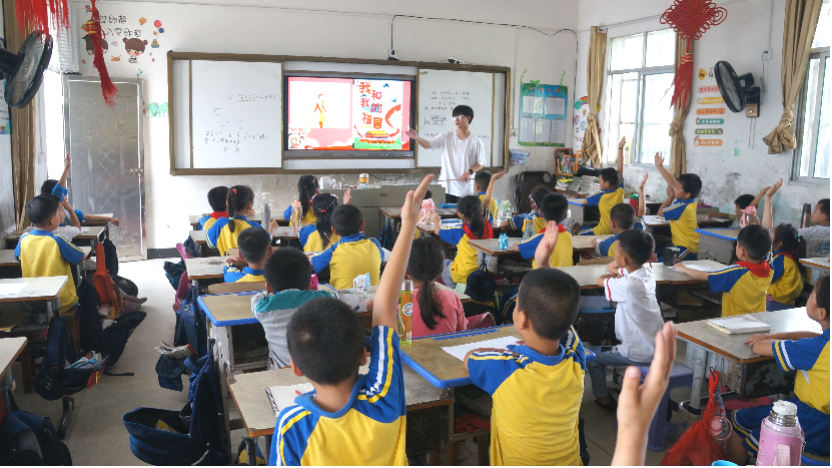 课堂最后,队员们带着孩子们进行“你画我猜”小游戏,大家踊跃上台画画,在提高了美术能力的同时,也对自己更加自信。
