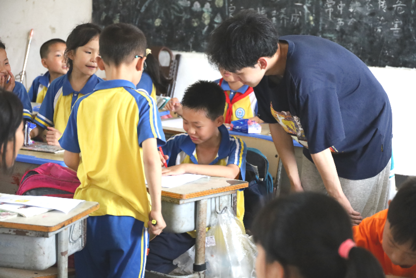 近日,筑梦服务队分别前往了张塝镇的田六中学、六溪小学、孙冲小学,对当地不同年龄段的留守儿童们进行了美育课程支教活动。